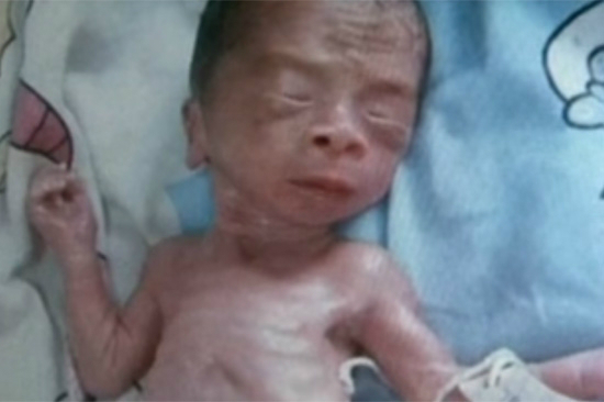 시리아 수도 외곽 반군 근거지인 구타 동부지역의 한 보건소에서 영상실조 치료를 받고있는 아기로, 영양결핍인 엄마로부터 모유 숭를 받지 못한데다 내전 중인 시리아군이 구호 손길을 차단한 탓에 분유도 먹지 못해 몸무게가 1.9kg으로 떨어졌다고 한다.