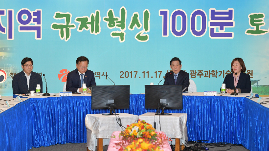 광주광역시는 행정안전부와 함께 17일 오후 광주과학기술진흥원에서 '솎아내는 숨은 규제 다시 살아나는 광주경제'라는 주제로 '규제혁신 100분 토론회'를 열었다.