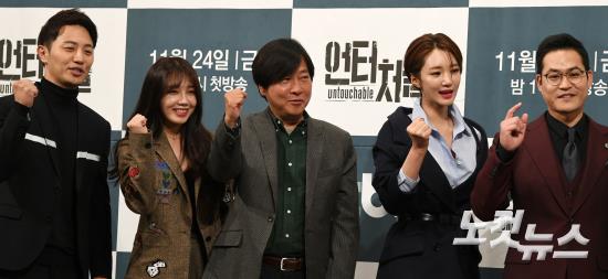 21일 오후 서울 강남구 논현동 임피리얼 팰리스 호에서 열린 JTBC 금토드라마 '언터처블' 제작발표회에 배우 및 감독이 포즈를 취하고 있다. 왼쪽부터 배우 진구, 정은지, 조남국PD, 고준희, 김성균