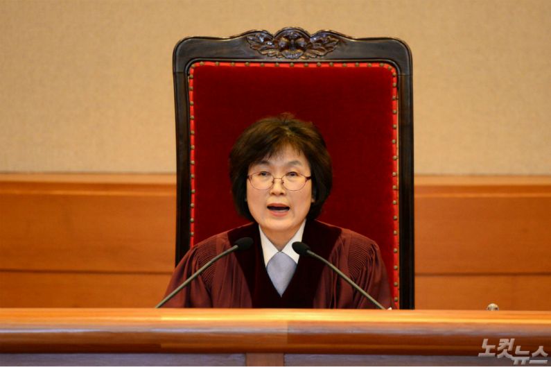 헌법재판소 대심판정에서 이정미 헌재소장 권한대행이 박근헤 대통령탄핵심판 사건에 대해 선고하고 있다. (사진=사진공동취재단/자료사진)