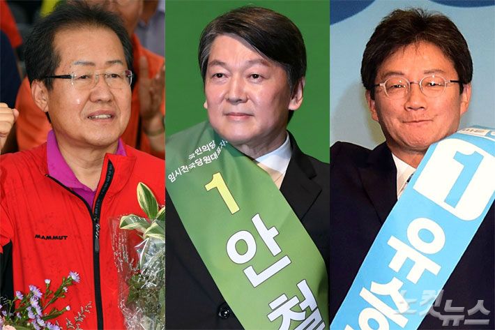 (왼쪽부터) 자유한국당 홍준표 대표, 국민의당 안철수 대표, 바른정당 유승민 대표 (사진=자료사진)