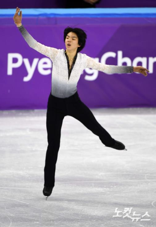 차준환이 17일 강원도 강릉 아이스아레나에서 열린 피겨 스케이팅 남자 싱글 스케이팅 프리 스케이팅에서 연기를 펼치고 있다.