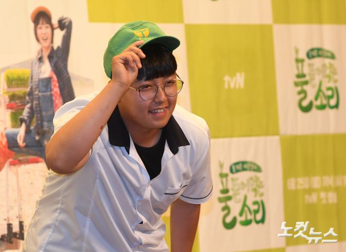 소년농부 한태웅 군이 25일 오후 서울 상암동 스탠포드호텔에서 열린 tvN 새 예능 ‘풀 뜯어먹는 소리’ 제작발표회에 참석해 포즈를 취하고 있다.