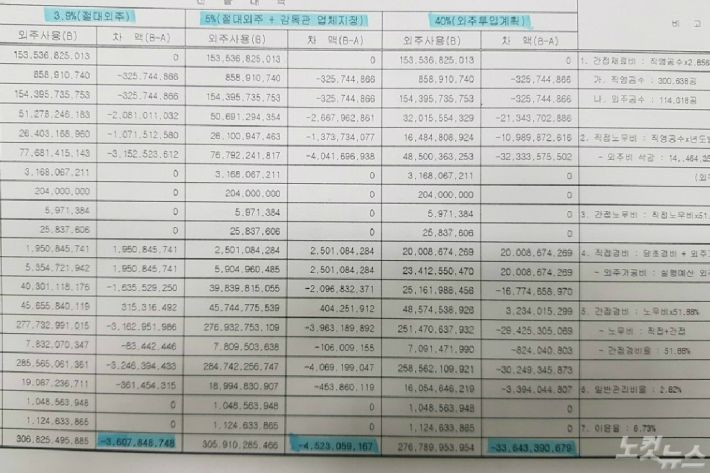 한진중공업은 불가피하게 외주를 맡겨야하는 5%를 제외한 나머지 35%를 임시공 투입이라는 꼼수를 써서 291억원 가량의 감액 사유를 지우려 했다.