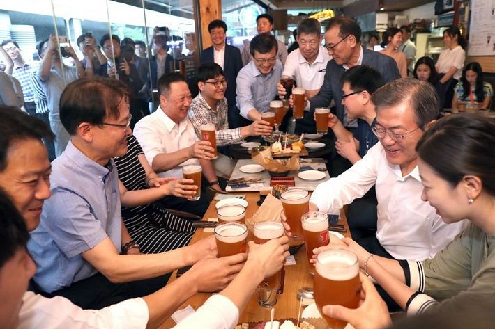 지난 26일 문재인 대통령의 '깜짝 맥주 미팅'의 시민 참석자에 대해 사전섭외 논란이 빚어졌다.