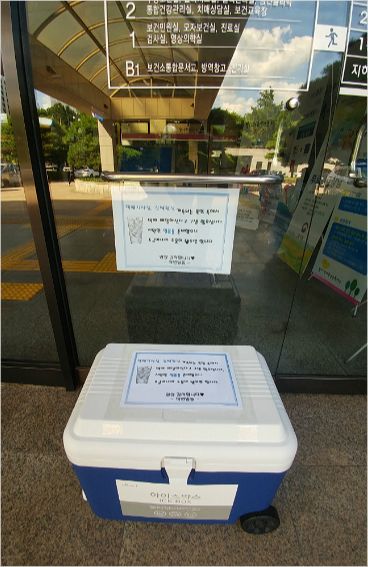 대구 달서구청은 구청을 찾는 택배기사와 우편 집배원들을 위해 구청 입구에 아이스박스를 마련했다.