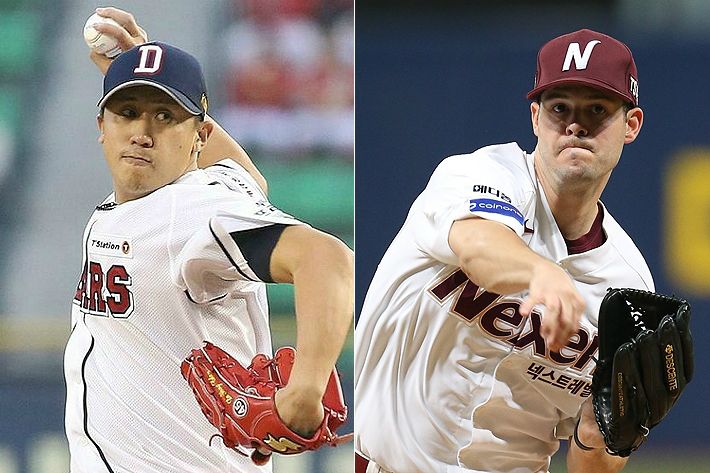 KBO리그 9월 MVP 등극을 노리는 이용찬(왼쪽)과 브리검. (사진=두산, 넥센 제공)