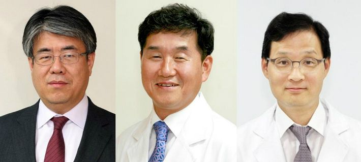 사진 왼쪽부터 정융기 병원장, 안종준 진료부원장, 민영주 교육부원장.(사진 = 울산대학교병원 제공)