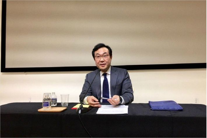 이도훈 외교부 한반도평화교섭본부장이 워싱턴DC의 한국문화원에서 특파원 간담회를 하고 있다. (사진=연합뉴스)