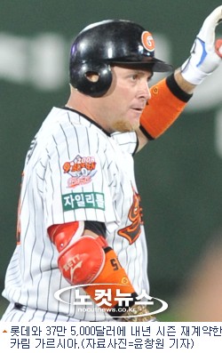 롯데는 12일 가르시아와 올해 연봉(20만 달러)보다 25% 상승한 27만 5,000달러에 계약금 10만 달러까지 총 37만 5,000달러(약 5억원)에 재계약했다고 밝혔다.