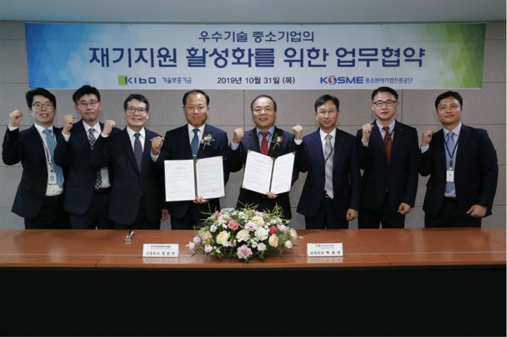 기보는 31일 부산시 문현동 기보 본사에서 중소벤처기업진흥공단과 '우수기술 중소기업의 재기지원 활성화를 위한 업무협약'을 맺었다.