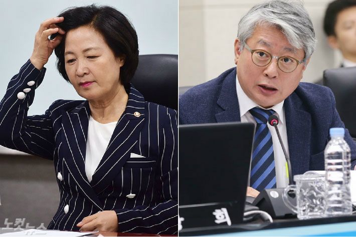 추미애 법무부장관과 더불어민주당 조응천 의원. (사진=윤창원 기자/연합뉴스)