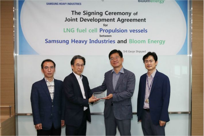 삼성중공업은 세계적 연료전지 제조사인 미국 블룸에너지(Bloom Energy)와 선박용 연료전지(Fuel cell) 공동 개발을 위한 업무 협약을 맺었다고 30일 밝혔다.