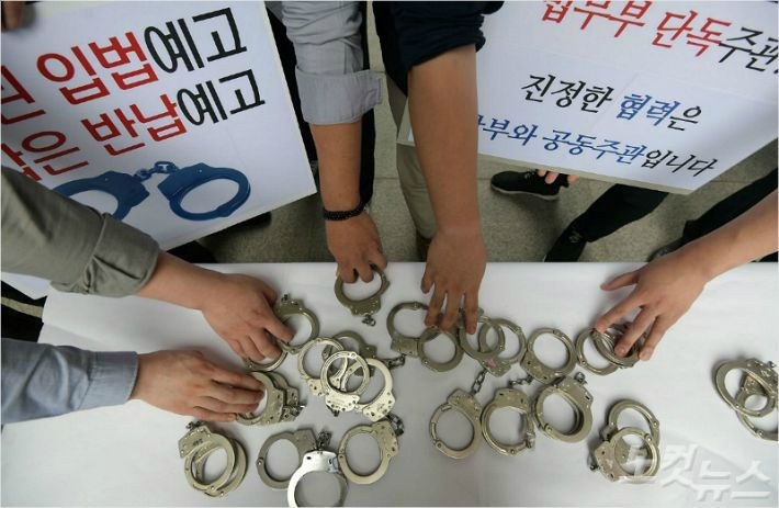 이번 입법예고안과 관련해 현직 경찰관들이 나서서 '수갑 반납 퍼포먼스'까지 하며 문제점을 지적한 것과 달리 검찰은 내내 공개적인 입장 표명을 꺼려왔다. 입법예고안 통과를 앞두고 갑작스레 변수가 생긴 상황이지만, 이번에도 검찰은 '조용한 협상'에 주력한다는 방침이다.