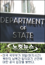 미국 국무부가 30일(현지시간) 북한의 남북간 정치,군사적 합의 무효화 선언에 대해 첫 공식 입장을 밝혔다.