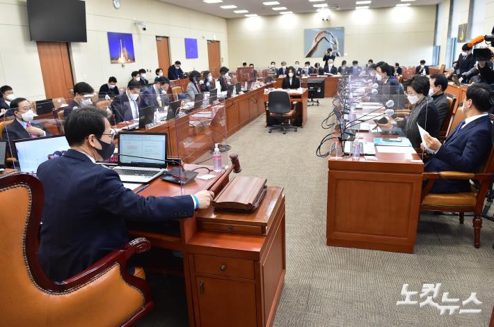이원욱 국회 과방위원장이 17일 국회에서 열린 과학기술정보방송통신위원회에서 의사봉을 두드리고 있다.
