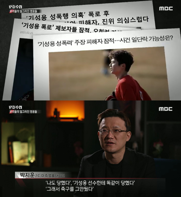 MBC 'PD수첩'이 축구선수 기성용(32) 성폭력 의혹 관련 피해 증언을 공개했다.