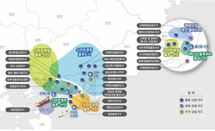 '경제공동체'는 물류·에너지·제조혁신·지원체계·혁신도시 등 5개 분야에 14개 과제가 선정됐다. 신공항·부산신항·철도를 연계하는 트라이포트 인프라를 활용한 동북아 물류플랫폼을 비롯해 대규모 수소생산 시스템 등 수소경제권을 구축한다. 동남권 주력산업의 재도약과 혁신성장을 위한 구조구도화와 디지털화에 나서고, 과학기술과 정보통신 혁신을 주도할 전문 지원기관 설립 등 동남권 연구개발 혁신 체계도 구축한다. 경남·부산·울산 혁신도시를 중심으로 산업혁신 지원플랫폼을 만들어 지역발전 혁신 체계를 마련한다.