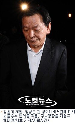 대검찰청 중앙수사부(이인규 검사장)는 정상문 전 청와대 총무비서관이 박연차 태광실업 회장으로부터 받은 3억 원 외에 다른 곳에서 10억 원 가량의 불법자금을 받은 혐의를 추가로 확인하고 뇌물수수 등의 혐의로 20일 구속영장을 다시 청구했다.
