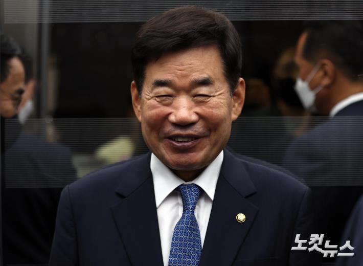 '국회 첫 출근' 환하게 웃는 김진표 신임 국회의장