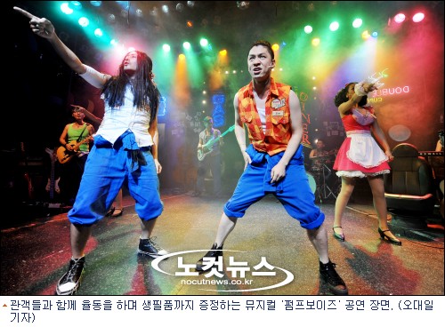 콘서트 뮤지컬 ''펌프보이즈''에서는 관객들에게 율동을 가르치고 게임을 하면서 관객들의 참여를 부추긴다. 지목된 관객들에게 라면과 샴푸 등 각종 생필품을 아낌없이 쏜다.