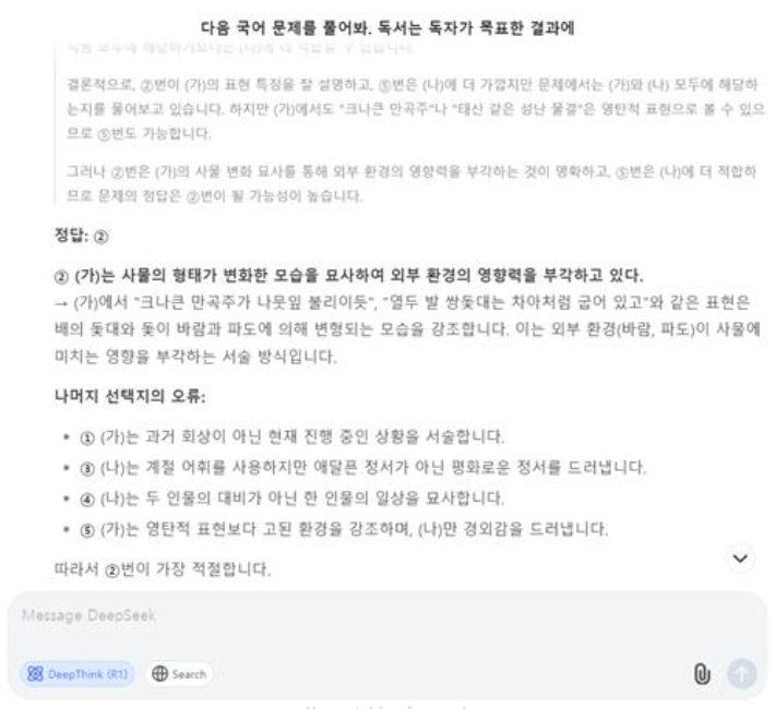 그래서 수학 문제라든지 우리 개발자들이 하는 코딩이라든지 그리고 간단하게 이 상황들, 지금 예를 들면 정치 상황들을 분석해서 데이터를 주면 분석 보고서를 막 A4 10장씩 막 만들어 줍니다. 대단히 논리 추론에 적합한 그래서 퀄리티, 그러니까 품질에 대단히 집중된, 그전에는 빨리빨리 답을 내는 게 중요했다라면 조금 틀리더라도 여기는 올바른 답을 오래 생각해서 이것을 o1이라고 하고 지금 o1은 오픈 AI의 챗GPT에서 나온 o1이 지금 세계 최고 수준의 상용화된 서비스라고 인정을 받았던 거예요. 구글의 제미니(Gemini)도 아직까지 추론, 이 o1 모델은 추론, 이걸 추론 모델이라고 하는데 내지 못했고 라마도 내지 못했고 여러분 앤트로픽의 클로드도 내지 못했고 일론 머스크가 만든 익스닷 AI도 당연히 내지 못했고 한국의 어떤 기업도 내지 못했어요. 중국의 알리바바도 내지 못했는데 이 작은 스타트업이 갑자기 o1하고 똑같은 R1이라고 하는 서비스를 1월 22일에 공개를 하게 됩니다.