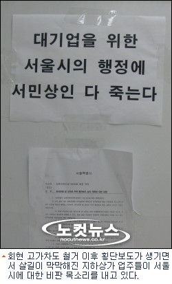 시민을 위한, 서민을 위한 시정을 표방하고 있는 서울시가 횡단보도를 설치하면 지하상가 230여 점포 시민들이 입게될 피해는 얼마나 될 지, 매출액은 얼마나 감소할 지 등을 한번이라도 따져 봤겠냐는 것이다.