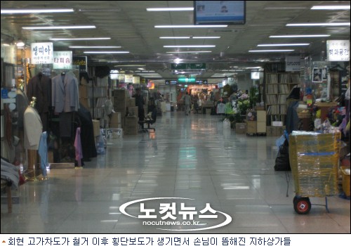 고가차도 자리에 횡단보도, 주변 지하상가 울상