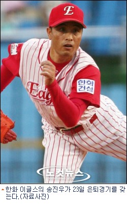 한화 이글스는 23일 대전구장에서 열리는 한화와 LG트윈스와 홈 경기에 송진우가 선발로 등판해 현역으로는 마지막 1이닝 정도 투구할 예정이라고 밝혔다.