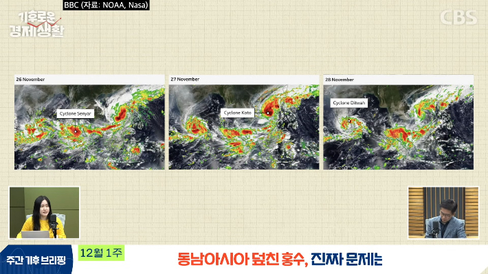 ◇ 최서윤> 네. 11월 말부터 12월 초 사이에 열대성 폭풍인 사이클론이 세냐르, 디트와, 코토 이렇게 3개 발생했다고 합니다. 3개의 사이클론이 겹친 것도 상당히 이례적인데 과학자들이 주목하는 점은 피해 강도가 점점 더 세지고 있다는 겁니다. 뉴욕타임스에 따르면 올해 초부터 태평양과 인도양에 발생한 사이클론과 저기압이 최소 16개라고 해요. 그런데 올해는 중간 정도의 사이클론에서도 비의 양이 엄청나게 많아졌다고 하고요. 광범위한 홍수를 초래한 걸로 나타났습니다.