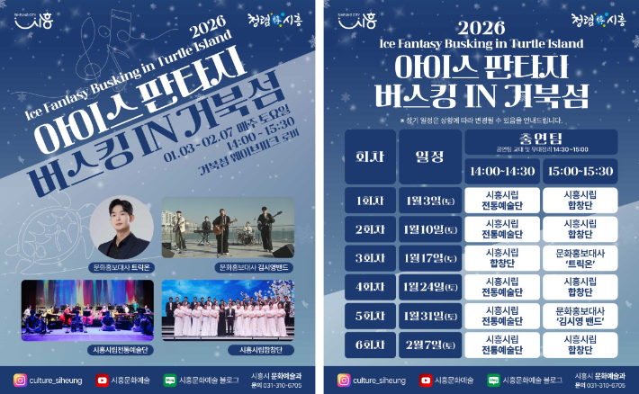 경기 시흥시가 겨울철 거북섬을 찾는 시민과 관광객에게 즐길거리를 제공하기 위한 문화예술공연인 '2026 아이스 판타지 버스킹'을 마련했다고 2일 밝혔다.