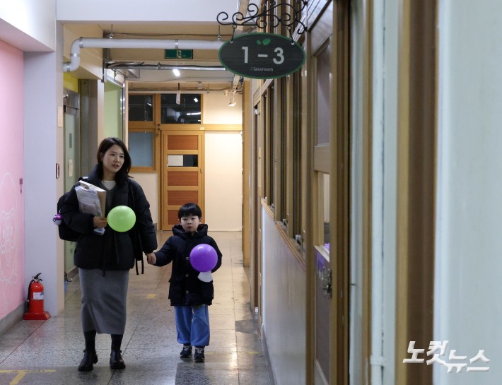 2026학년도 초등학교 신입생 예비소집일인 6일 서울 강서구 우장초등학교서 예비 초등학생이 엄마와 함께 학교를 둘러보고 있다.