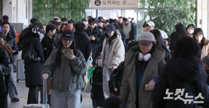 설 연휴 마지막 날인 18일 서울 서초구 강남고속버스터미널에서 귀경객들이 버스에서 내려 귀가하고 있다.