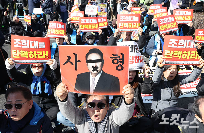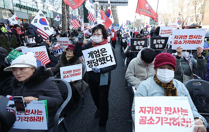 尹 선고 앞두고 서초동 긴장감 고조…"무죄" vs "사형"[노컷네컷]