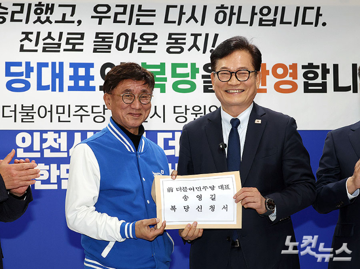 "무죄받고 돌아온다"송영길, 3년 만에 민주당 복당[노컷네컷]
