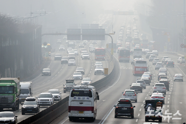 설 연휴가 시작된 14일 서울 서초구 장원IC 인근 경부고속도로 하행선에 차량들이 정체를 보이고 있다. 윤창원 기자
