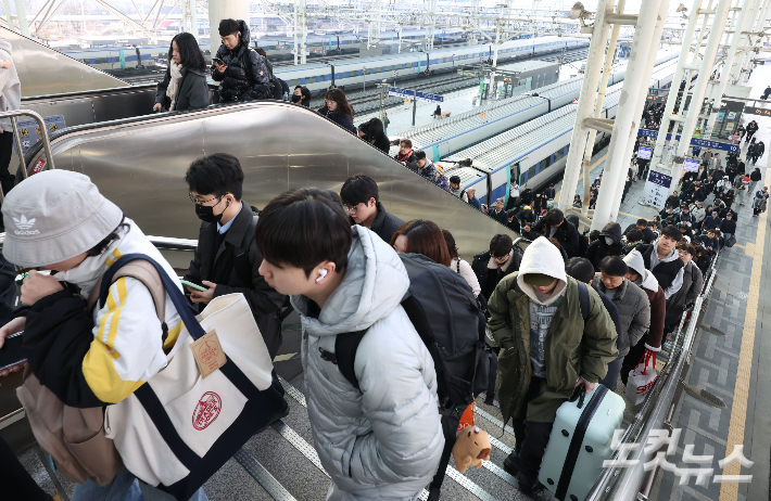 설 연휴 마지막 날, 고향의 정 가득 안고 귀경 설 연휴 마지막 날인 18일 오전 서울역이 귀경객들로 붐비고 있다. 류영주 기자
