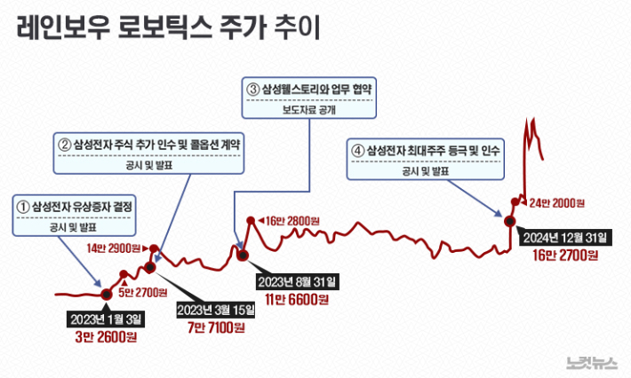 검찰은 2022년에서 2024년 사이 삼성이 레인보우로보틱스에 잇따라 지분을 확보하고 최종 인수하는 과정에서 해당 주요 정보에 접근 가능한 내부자들로부터 정보를 취득한 주변인들이 이를 이용해 부당이득을 얻었다고 의심하고 있다.