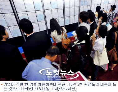 기업이 직원 한 명을 채용하는 데 드는 비용이 평균 115만 2천 원 정도인 것으로 나타났다.