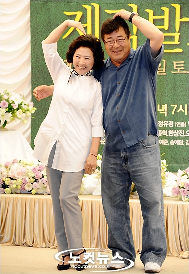 KBS 2TV 새 주말연속극 ''결혼해주세요''(극본 정유경, 연출 박만영)의 백일섭-고두심이 15일 오후 서울 대치동 컨벤션 마벨러스에서 열린 제작발표회에서 익살스런 포즈를 취하고 있다.