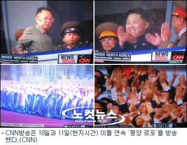 CNN방송은 10일 조선중앙TV의 열병식 생중계 영상을 방송하며 김일성광장에 나가 있는 자사 기자를 연결한 데 이어 11일에도 김정일-김정은 부자의 경축야회(夜會) 참석 모습과 자사 기사의 ''평양 르포''를 내보냈다.