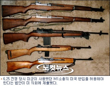 6.25전쟁 때 미군이 사용했던 M1소총을 한국에서 미국으로 재반입하도록 허용해야 한다는 법안이 미 의회에 제출됐다.
