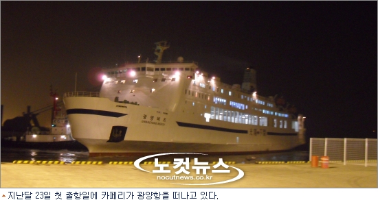 지난달 23일 첫 출항일에 카페리가 광양항을 떠나고 있다