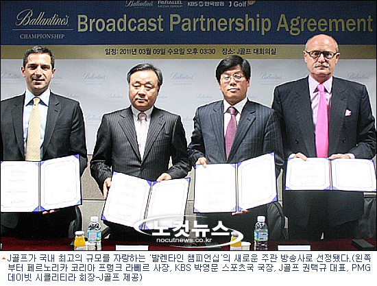 앞서 J골프는 지난 9일 J골프 대회의실에서 KBS, 페르노리카 코리아, 파라렐 미디어 그룹(PMG)과 함께 ''발렌타인 챔피언십'' 주관 방송사 협약 조인식''을 가졌다.