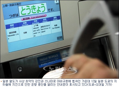 다만 역 출입구마다 지진 발생시 비상대비와 인명구조를 담당하는 요원들이 배치돼 전날의 상흔을 되새기고 있었다.