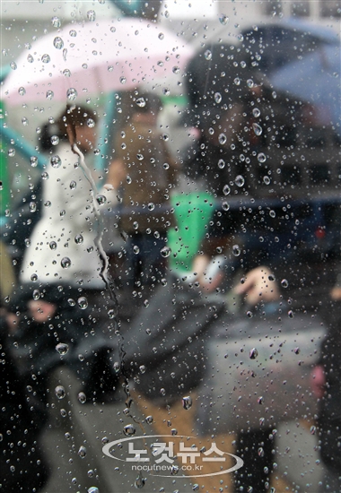 전국적으로 비가 내리고 있는 7일 오전 서울 강남역을 이용하는 시민들이 우산에 몸을 피한 채 출근길을 서두르고 있다.