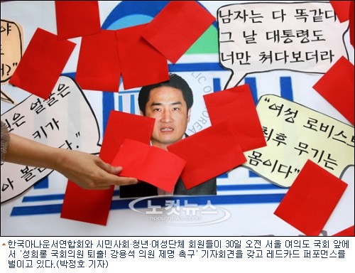 국회 윤리특별위원회는 30일 전체회의를 열고 여대생 성희롱 발언으로 물의를 일으켰던 무소속 강용석 의원에 대한 제명안을 통과시켰다.