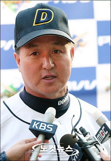 두산 베어스 김경문 감독이 9일 2연승후 기자들과 인터뷰를 갖고 있다. (오대일기자/노컷뉴스)