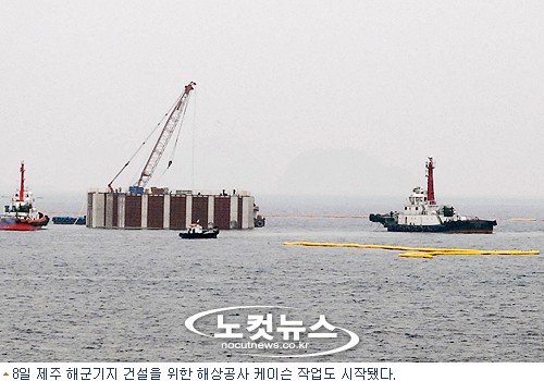 해상 투하가 시작된 케이슨은 무게가 8천 8백 톤으로 한번 투하되면 다시 꺼내기가 사실상 불가능하다. 작업이 진행되고 있는 케이슨은 해군기지 외곽방파제 항만구조물 57개 가운데 1개로 길이 38m, 폭 25m, 높이 20.5m 규모다.