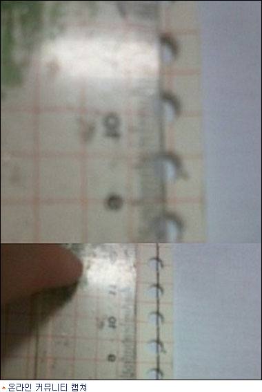 자를 노트 속지의 구멍 뚫린 부분에 대고 선을 일직선으로 긋기만 하면 된다.